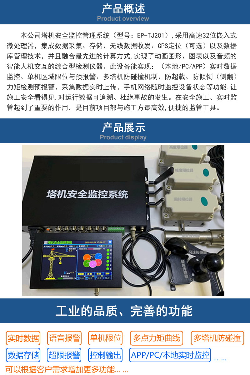 2、塔吊作業時各種數據全過程記錄,存儲并實時發送到云服務器,并提供危險性預警