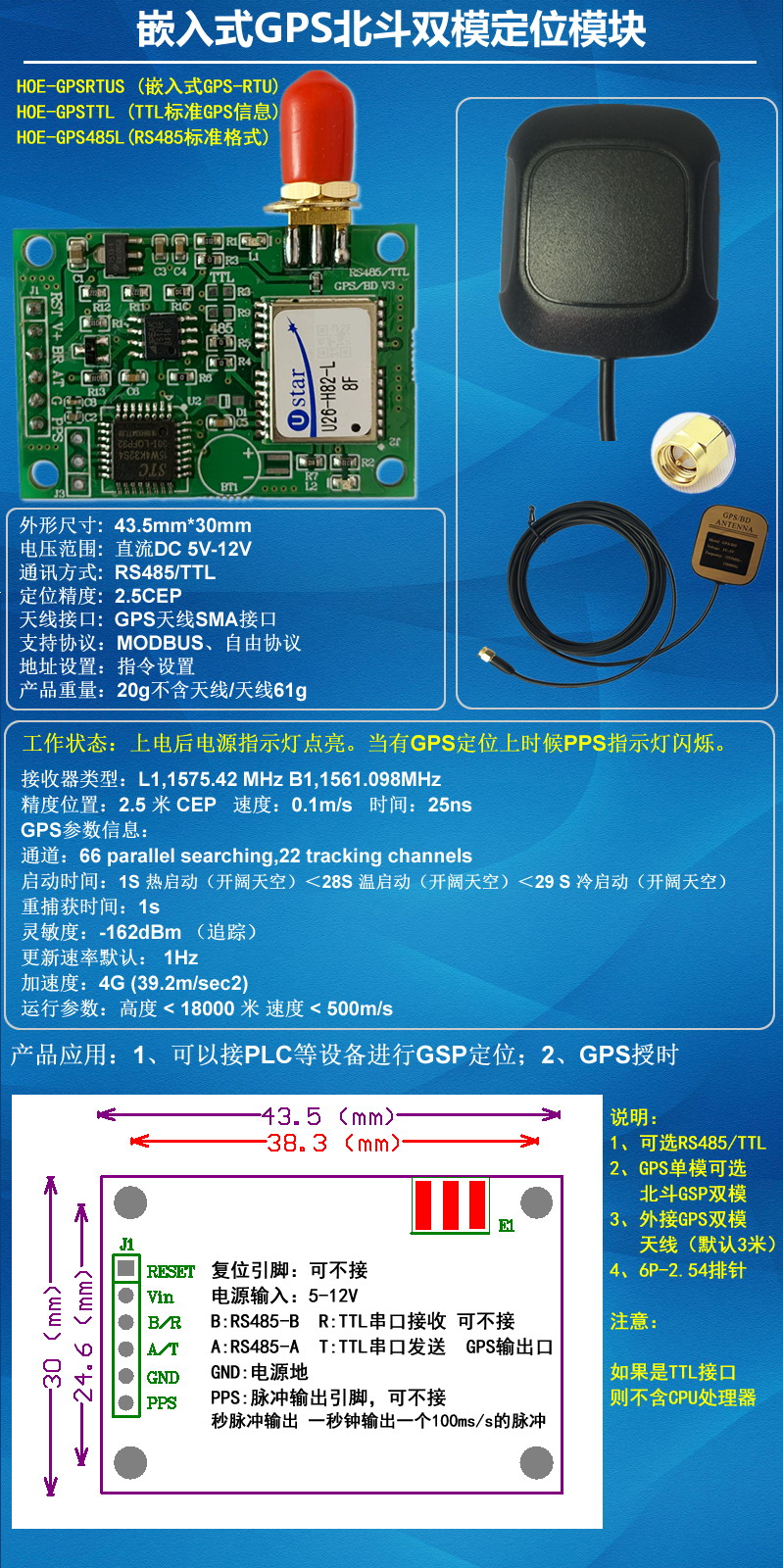 HOE-GPS485L   (嵌入式RS485-GPS.自動輸出標準格式GPS信息)