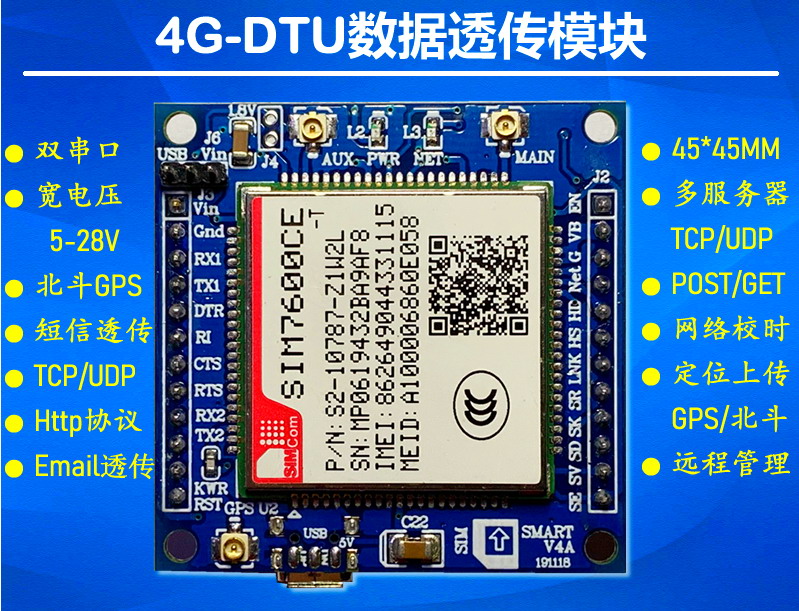 產品名稱:4GDTU透傳模塊(均帶GPS功能)產品型號:EP-M4GDTU-A(不帶網口不帶語音) 尺寸:45*45mm 定位孔40*40mm
