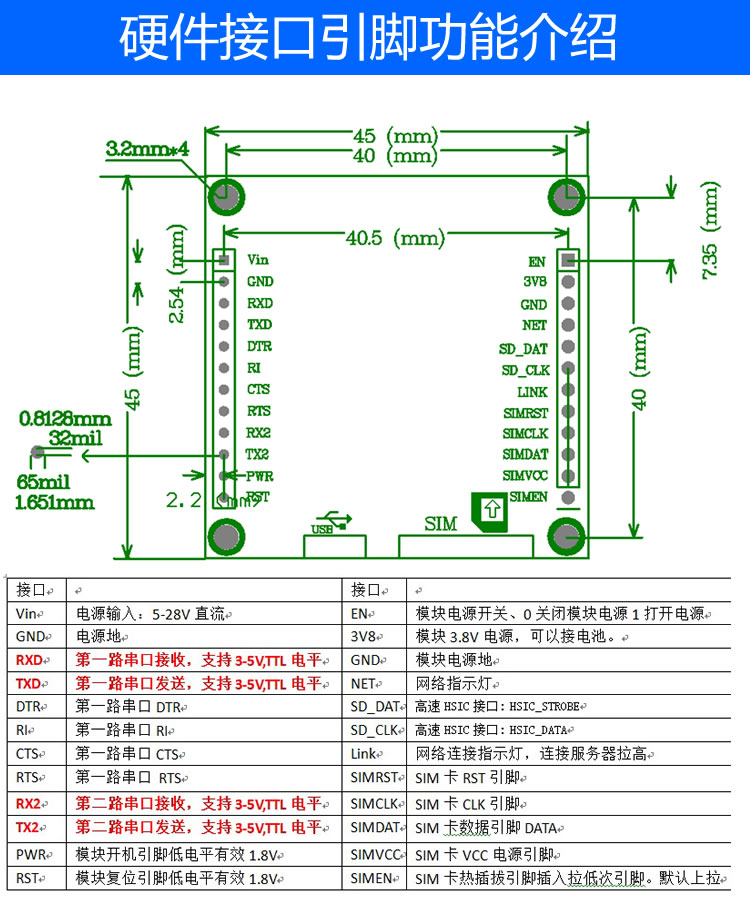 EP-M4GDTU-B(板載網口) 尺寸:45*66mm 定位孔40*40mm