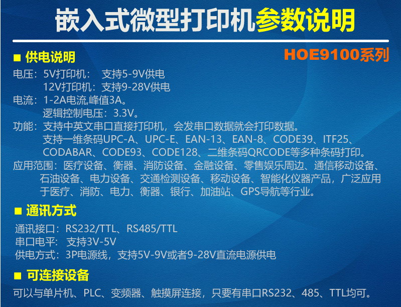 電壓:5V打印機支持5-9V供電;12V打印機:支持9-28V供電