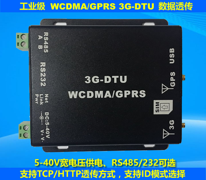 工業級3G-DTU數據透傳設備,支持TCP/HTTP透傳模式選擇,支持GET/POST傳輸方式選擇,支持設備ID號信息設定。電壓支持5-40V寬電壓,溫度-30-80度。