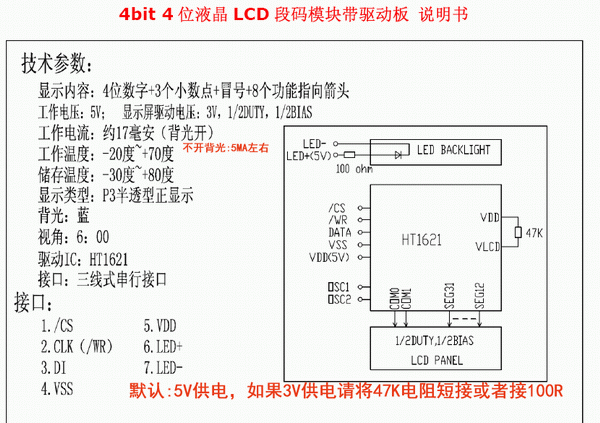LCD段碼液晶,板載HT1621驅動芯片,CPU直接驅動即可!