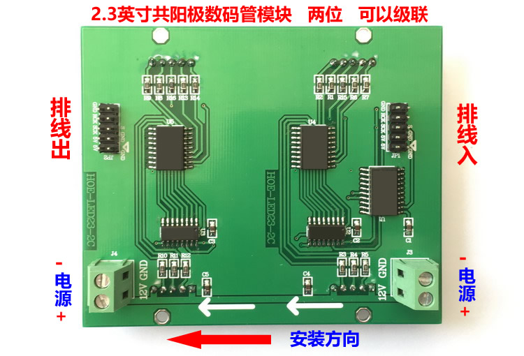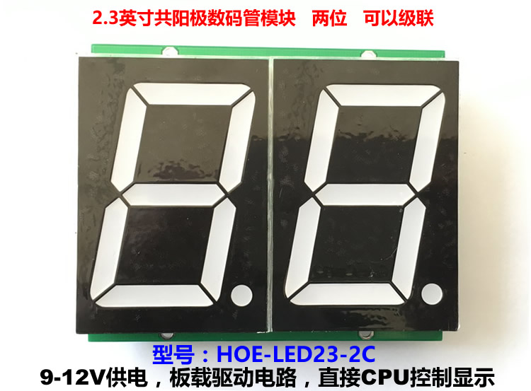 2位2.3寸共陽級數(shù)碼管模塊,可以級聯(lián)。供電電壓9-12V