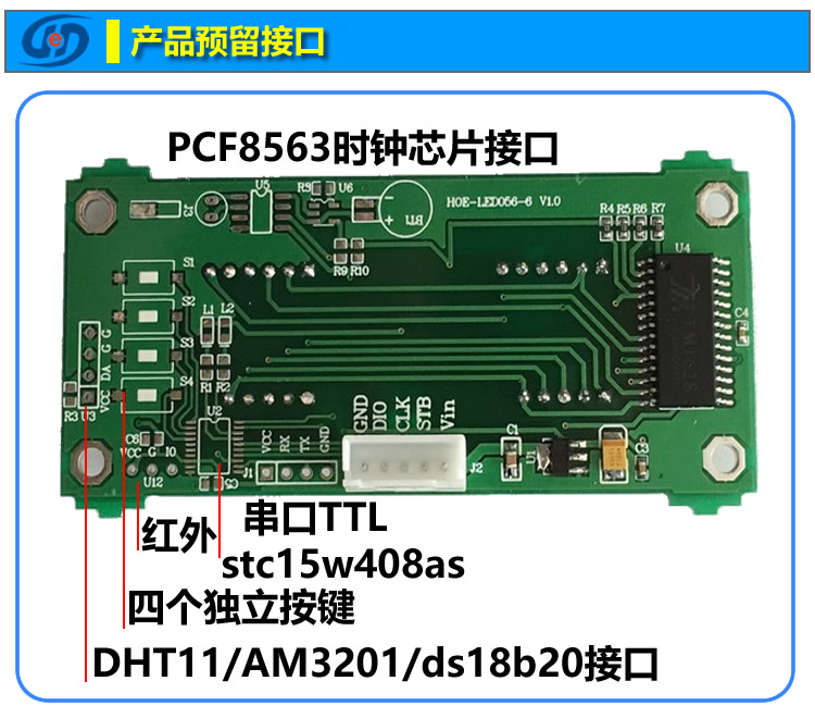 6、預留單片機串口TTL接口:可以升級單片機程序,也可以實現串口發數據顯示到LED數碼管;