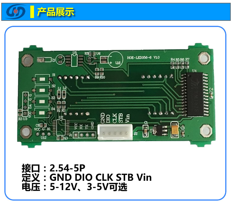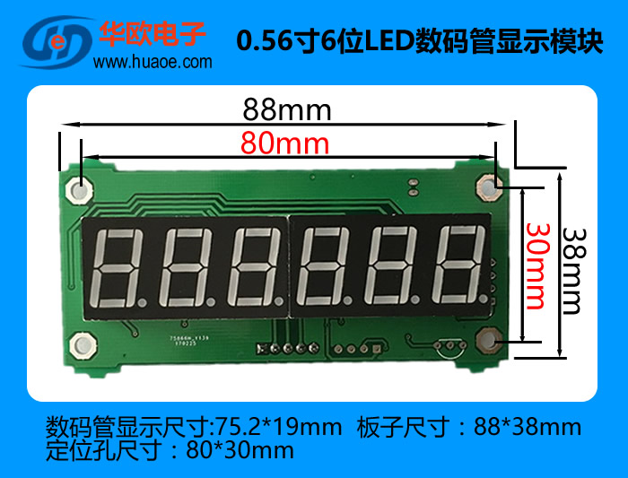 6位0.56英寸LED數碼管顯示模塊。供電電壓5-12V/3-5V可設定。