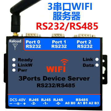 1. WIFI與3串口數據互轉(RS232/RS485僅可選擇一種,不能同時)